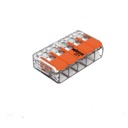 Borne de conexión con palancas; para cualquier tipo de conductor; máx. 4mm²; 5 conductores; Carcasa transparente; Temperatura ambiente máxima 85°C (T85); 4,00 mm²; transparente